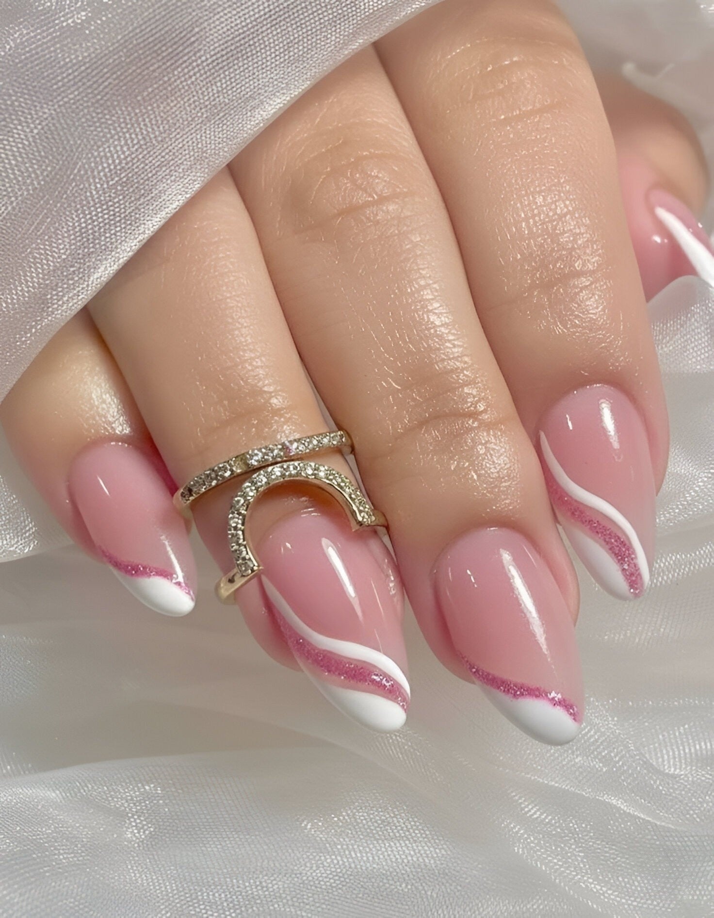 APPLIEDNude Pink Glitter & White Stroke Press-On Nails + Full Application Kit