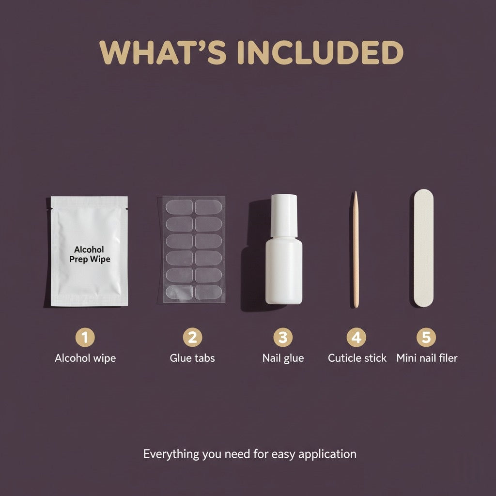 Tip: Apply enough glue to fully cover the nail surface and avoid air pockets. Using a generous amount of glue helps secure the nails and extends wear time. Remove any excess glue with a cloth, cotton round, or nail brush.