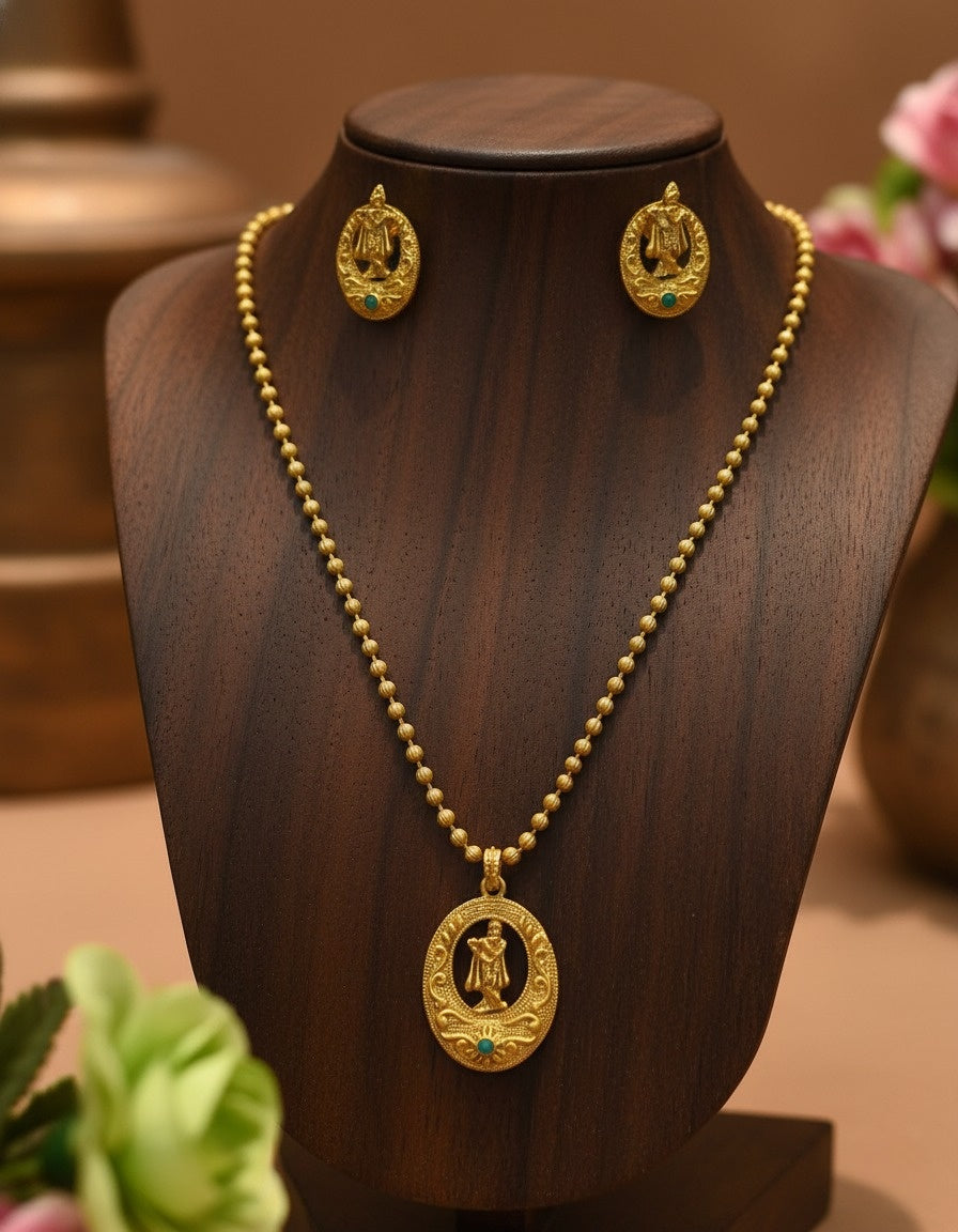 Sondarya Antique Gold-Toned Divine Krishna Pendant Set With Earrings