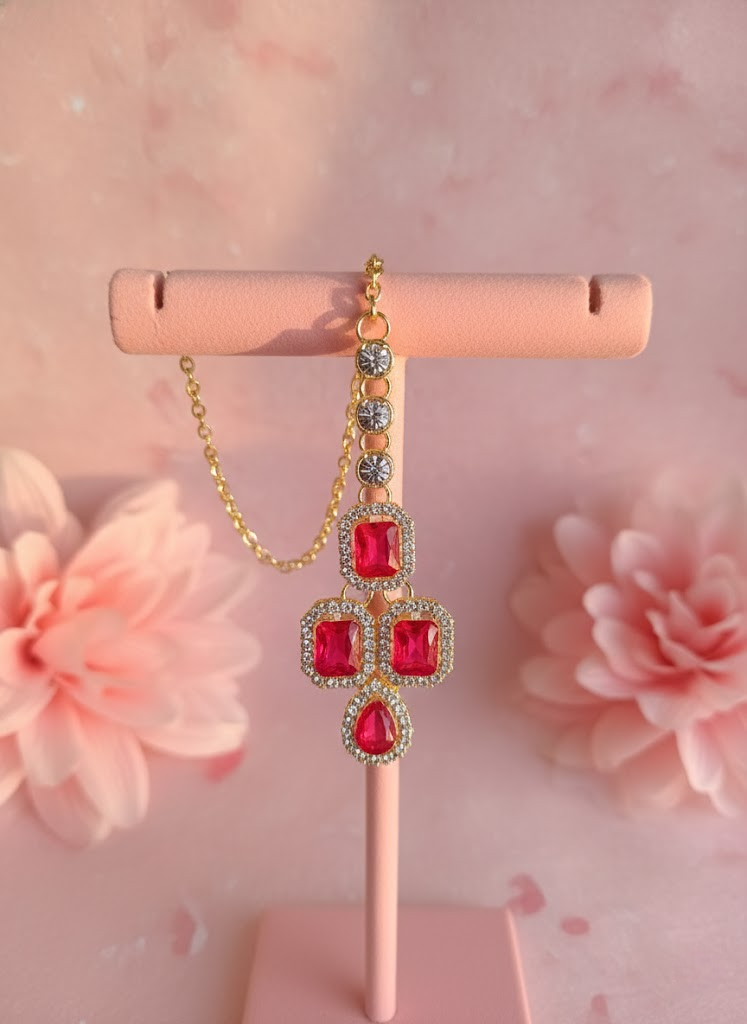 Sondarya Empress Fuchsia Pink Double-Layered Necklace Set With Maang Tikka